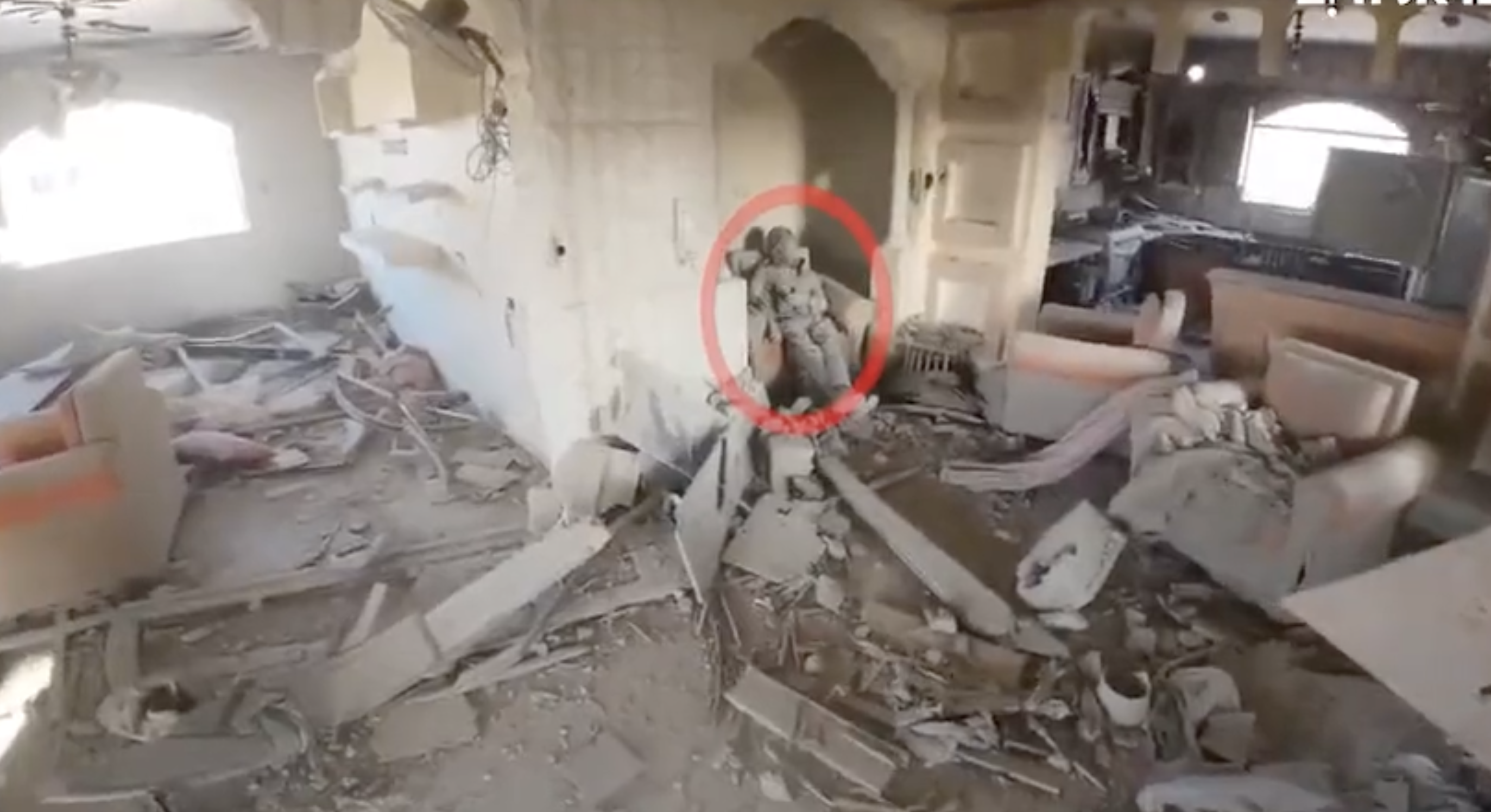 ويظهر في مقطع الفيديو يحيى السنوار جالسا جريحا ومنهكا على أريكة في منزل في رفح حيث استشهد على يد قوات الاحتلال الإسرائيلي في شهر أكتوبر 2024.