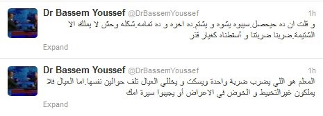 وصف الاعلامي باسم يوسف مرتضى منصور بأنه من العيال التي تشتم بالام والاب عندما ترد عليها وأن هذا اسلوبه الدائم في الرد على انسان يخالفه وانه مرمي كالغيار القذر بعد تهزيقة في الحلقة الماضية.