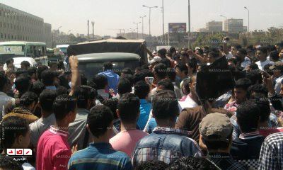 استمرار تظاهر الآلاف من طلاب المدينة الجامعية أمام مشيخة الأزهر وسط هتافات مطالبة برحيل رئيس الجامعة واستمرار قطع طريق الأوتوستراد من الجانبين. .