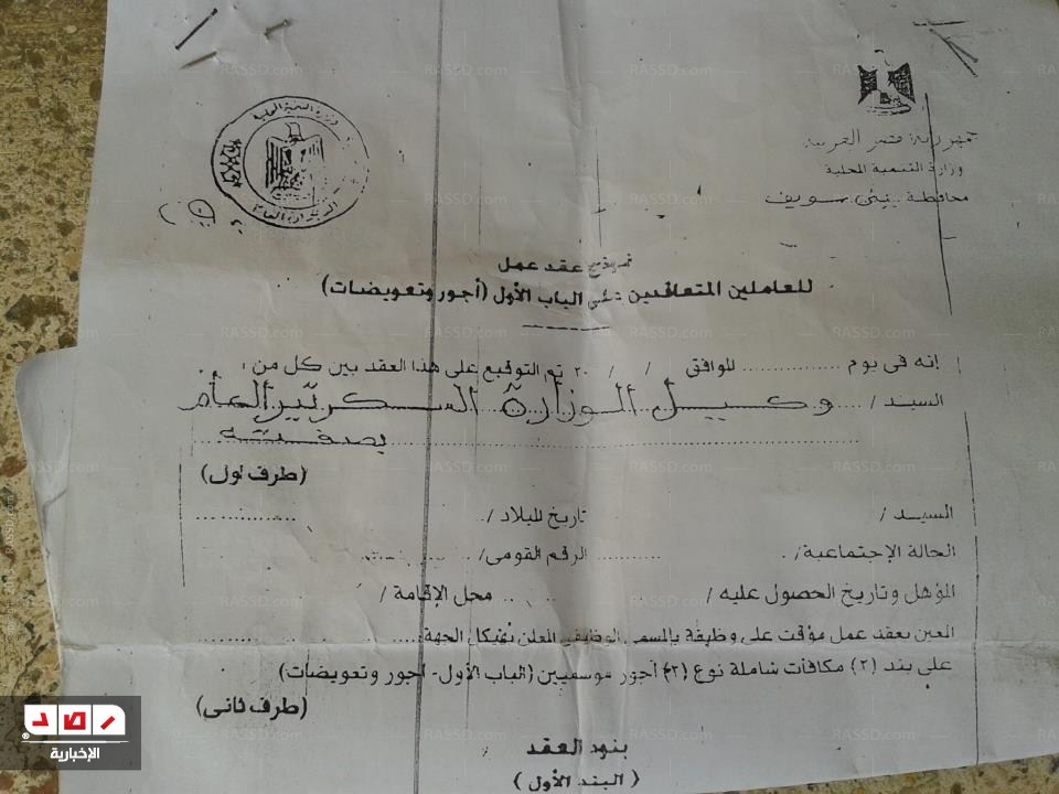 وأوضح العاملون أن هذا ليس العقد الصادر من وزارة التنمية المحلية بأنه لا يجد به هذا البند .