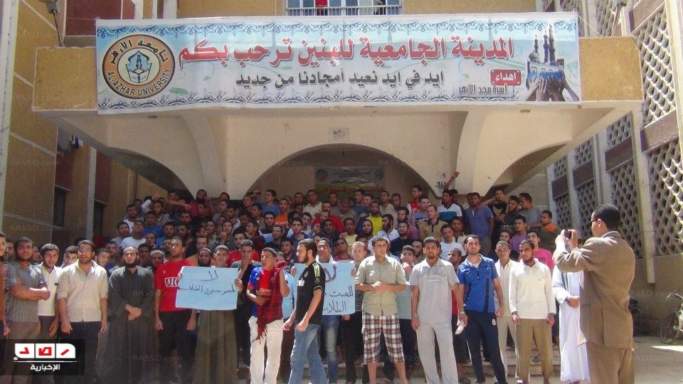 تظاهر المئات من طلاب الأزهر داخل المدينة الجامعية بأسيوط بمنطقة الشيخوة "احتجاجا علي سوء التغذية وتسمم ثلاثة من زملائهم بسبب أكل التونة وتردي الحالة داخل المدينة.