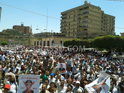 بينما تظاهر الألاف من أبناء سيناء بمحيط مسجد النصر بالعريش في جمعة الرفض التي دعت لها القوي الاسلامية و الوطنية و الثورية بشمال سيناء لدعم الشرعية ورفض الإنقلاب العسكرى الذى قام به بعض قيادات الجيش .