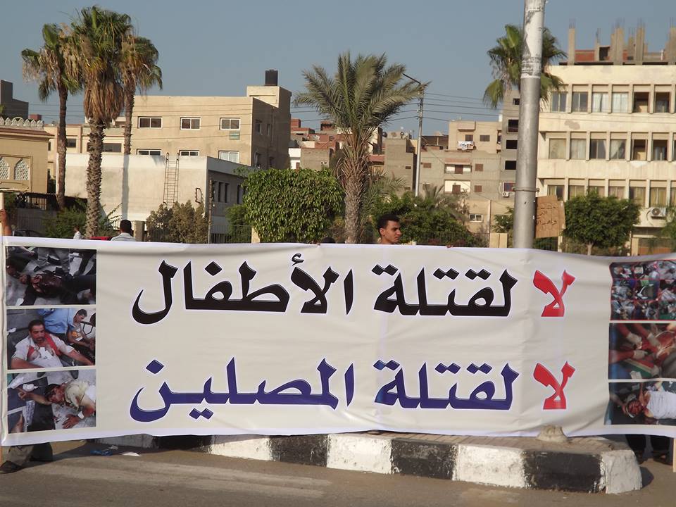 وردد المشاركون هتافات " الجيش المصرى بتاعنا و السيسى مش تباعنا " ، "يا سيسي يا سسيسي دم المسلم مش رخيص" ، "يا لميس يا رأس الحية الخلافة جاية جاية" ورفع المتظاهرون لافتىة مكتوب عليها: "لا لقتلة الاطفال والمصلين".
