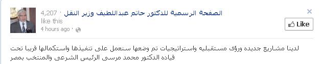 وأضاف عبد اللطيف على صفحته الرسمية على موقع التواصل الاجتماعي "فيس بوك" أنهم سيتكملون تلك المشروعات تحت قيادة الدكتور محمد مرسي الرئيس الشرعي المنتخب.