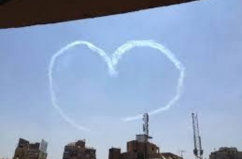 بعد القلب الذي رسمته فوق ميدان رابعة العدوية والحرس الجمهوري قبيل مجزرة الفجر، قامت طائرات عسكرية اليوم برسم قلب فوق المتظاهرين في ميدان النهضة ضمن "مليونية كسر الانقلاب" الرافضة للانقلاب العسكري على الرئيس محمد مرسي.