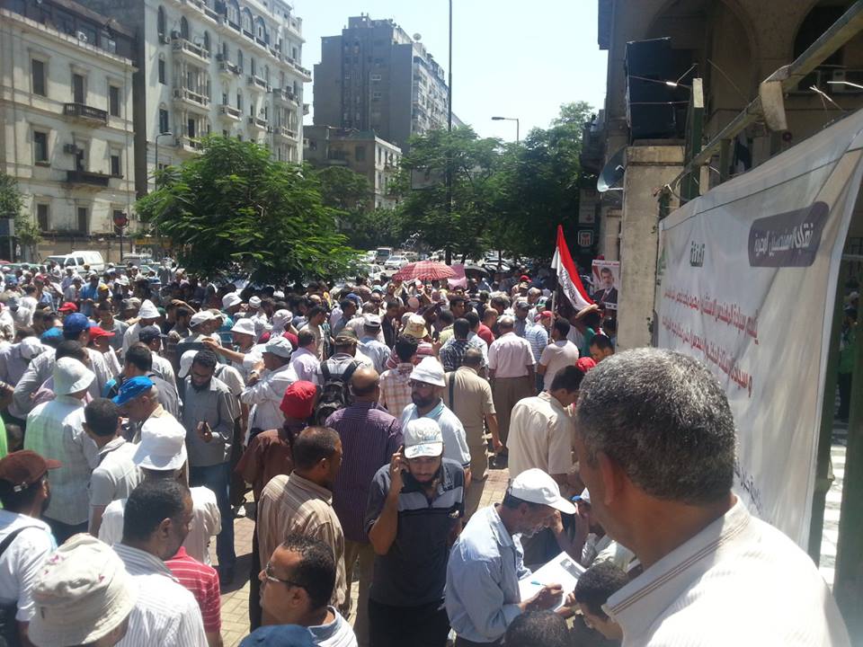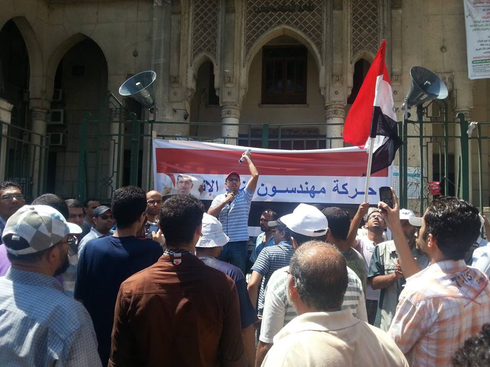 نظمت حركة "مهندسون ضد الانقلاب" وقفة حاشدة للمهندسين أمام نقابة المهندسين العامة بشارع رمسيس اليوم السبت.