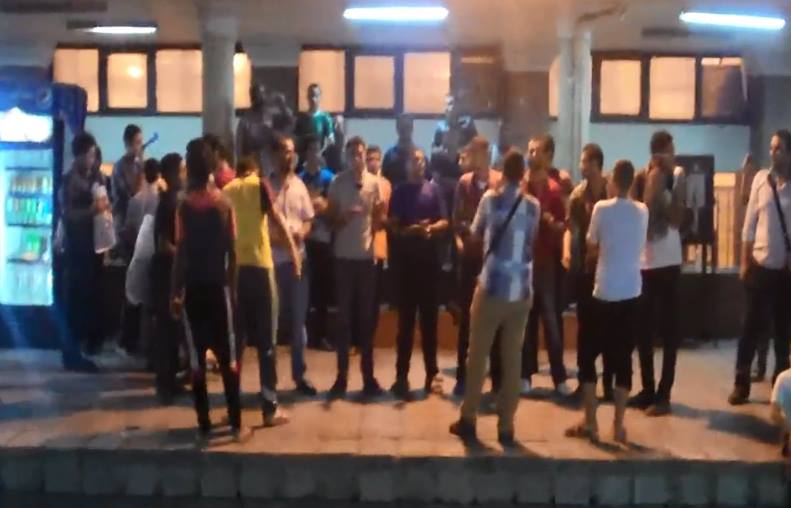 سلاسل بشرية لطلاب ضد الانقلاب في محطة قطار بنى سويف