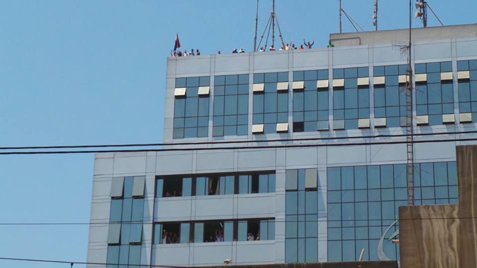 وعلى الجانب الأخر، اعتلى عدد من موظفي البريد اسطح المبنى ورفعوا الأعلام المصرية في تفاعل منهم مع المسيرة المنطلقة في طريقها لرابعة العداوية.