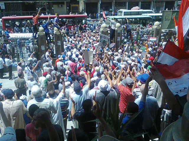 أنطلق عشرات الآلاف من مؤيدى الرئيس محمد مرسى في مسيرة حاشدة من مسجد الفتح برمسيس متجهة إلى ميدان رابعة العدوية، رافعين الأعلام المصرية،ومرددين هتافات مثل "أرحل يا سيسي مرسي رئيسي".