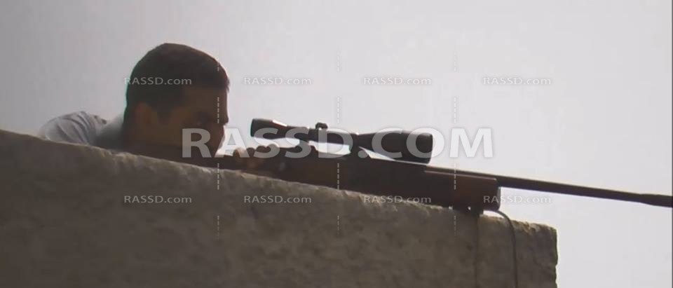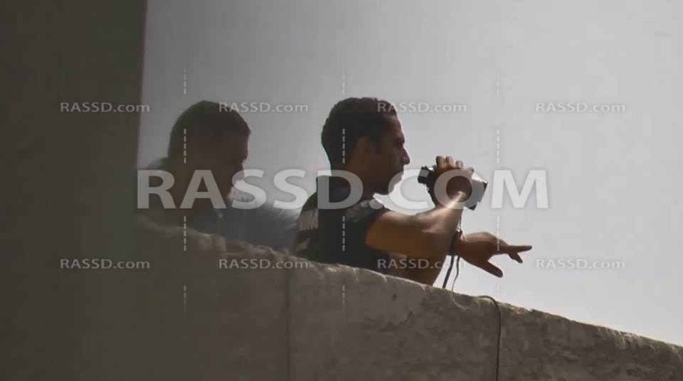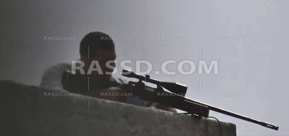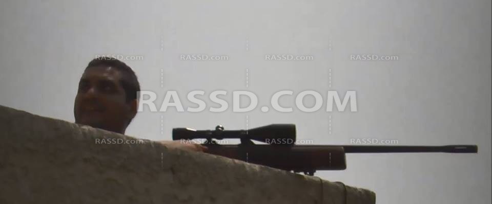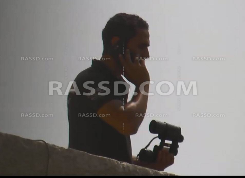 فرد مراقبة يجواره أحد القناصة فوق فندق النصرالتابع للقوات المسلحة اليوم في محيط اعتصام رابعة أثناء مجزرة فضه،