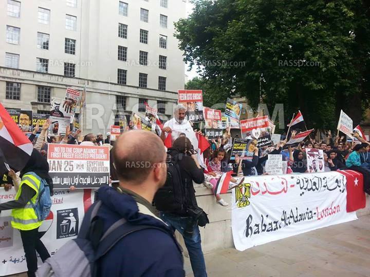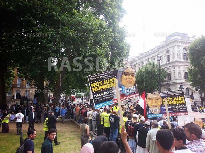 تظاهر اليوم المئات في لندن أمام مكتب رئيس الوزراء ضد الانقلاب العسكري، ومجازره .