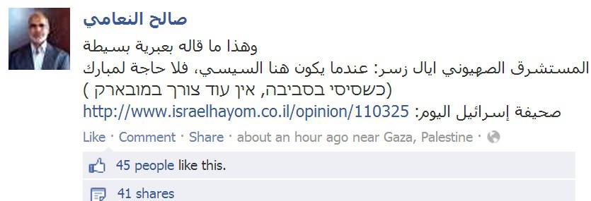 وقام الأكاديمي الفلسطيني صالح النعامي المتخصص في الدراسات العبرية بترجمة كلمة المستشرق الصهيوني التي كتبها في صحيفة إسرائيل اليوم.