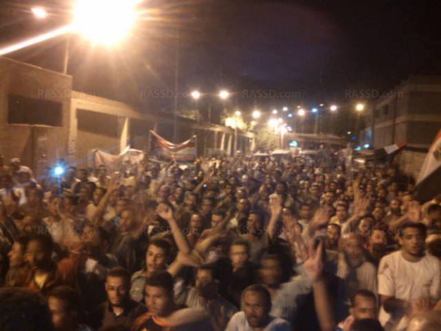 ‫وفي كفر الشيخ، نظم الآلاف من أهالي بلطيم الرافضين للانقلاب العسكري مسيرة شعبية مساء أمس جابت قرى مركز بلطيم مروراً بالطريق الساحلي الدولي، تنديدا بمجازر الانقلابيين في مصر.