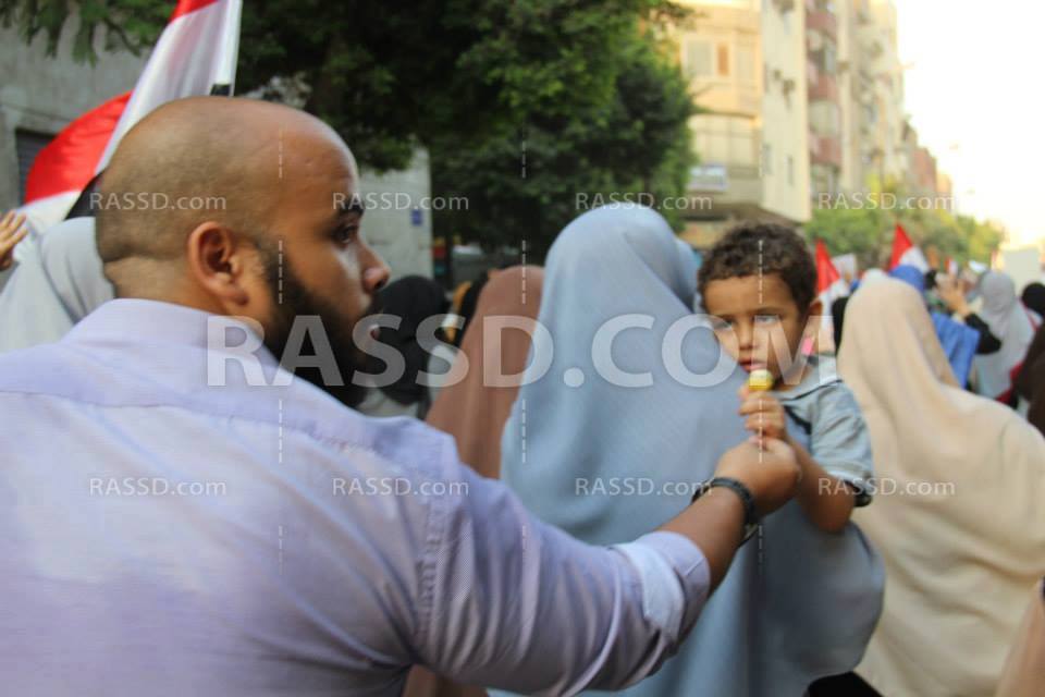 وررد الاهالى هتافات كان منها، "بالطول بالعرض هنجيب السيسى الأرض"، "يسقط يسقط حكم العسكر"، فى حين تفاعل المواطنين من شرفات منازلهم ومن اعلى اسطح المنازل مع المسيره برفع اشارات رابعه او والنصر، ورفع صور مرسى.