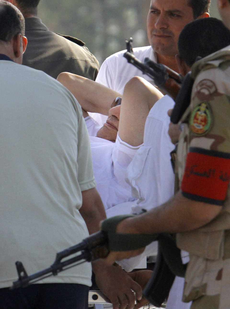 وأوردت الوكالة صورا قالت إنها حصرية تصور اللحظات الأولى لعملية نقل مبارك، 85 سنة، إلى مستشفى المعادي العسكري، محاطا بحماية من القوات المسلحة.