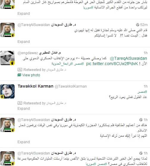 تساءل الداعية والمفكر الإسلامي الدكتور طارق السويدان: "لماذا يجمع أهل الخير التبرعات الشعبية لسوريا بشق الأنفس بينما أرسلت المليارات الحكومية بسرعة للانقلاب العسكري في مصر".