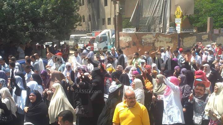 ويردد المتظاهرون هتافات مثل" بتغيظك كلمة رابعة .. طب رابعة رابعة رابعة"،" يسقط حكم العسكر ..عفتاح هوا السفاح"، "ضحكوا علينا وقالوا ارهاب و احنا جران الباب فى الباب"،" السيسي طلع شارون نفس الشكل ونفس اللون"، " يا إعلام يا كذاب السيسي قتل الشباب".