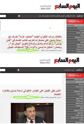 في فضيحة جديدة لصحيفة اليوم السابع ، كشفت عدم الالتزام بمعايير المهنية وميثاق الشرف الصحفي ، نشرت اليوم السابع أول أمس السبت تقريرا حول وجود القيادي الإخواني أسامة ياسين في غزة يُشرف على تدريب كتائب القسام في خان يونس ، وبمساهمة تركيا بالدعم المادي والسلاح لتكوين ماأسمته الصحيفة "جيش حر".