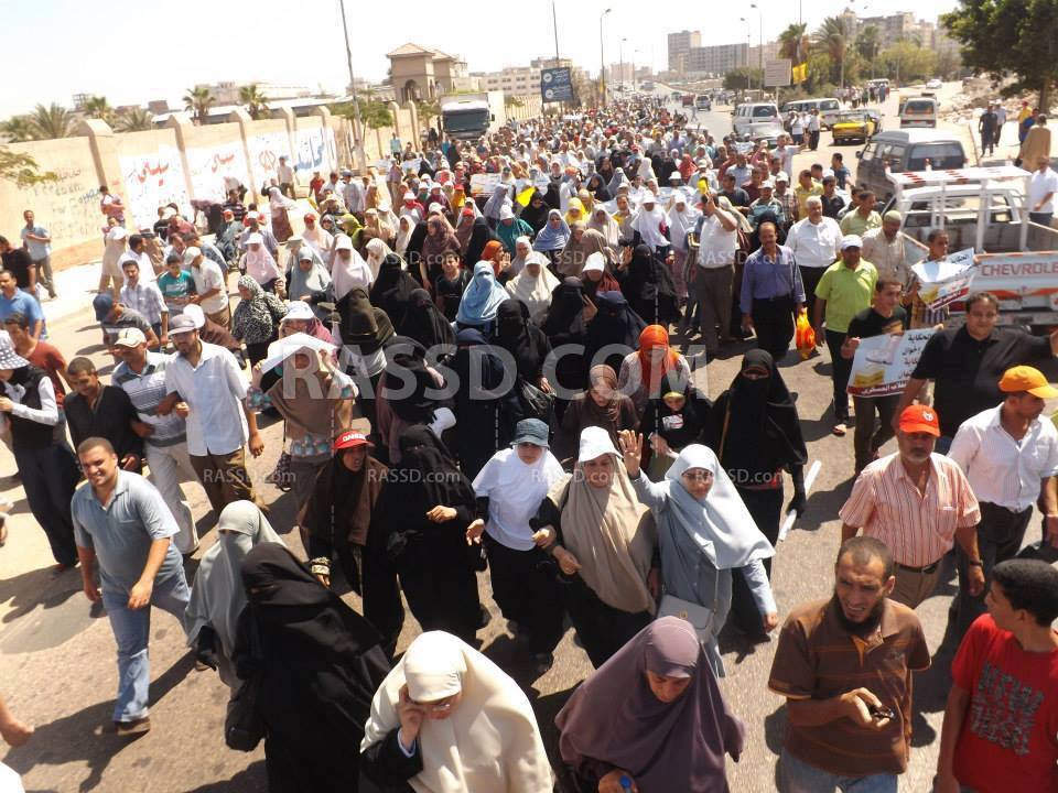 فيما هاجم عدد من البلطجية على المتظاهرين في مسيرة بمنطقة العوايد التابعة لمحافظة الأسكندرية.