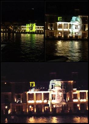وعكست السفن صور الشهيدة أسماء البلتاجى وإشارة الحرية رابعة عل مبنى القنصلية من البحر دعماً لمصر ورافضي الإنقلاب العسكري الدموي.