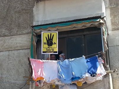 قد تفاعلي الأهالي من منازلهم مع المسيرة رافعين لها شعار النصر "رابعة العدوية".