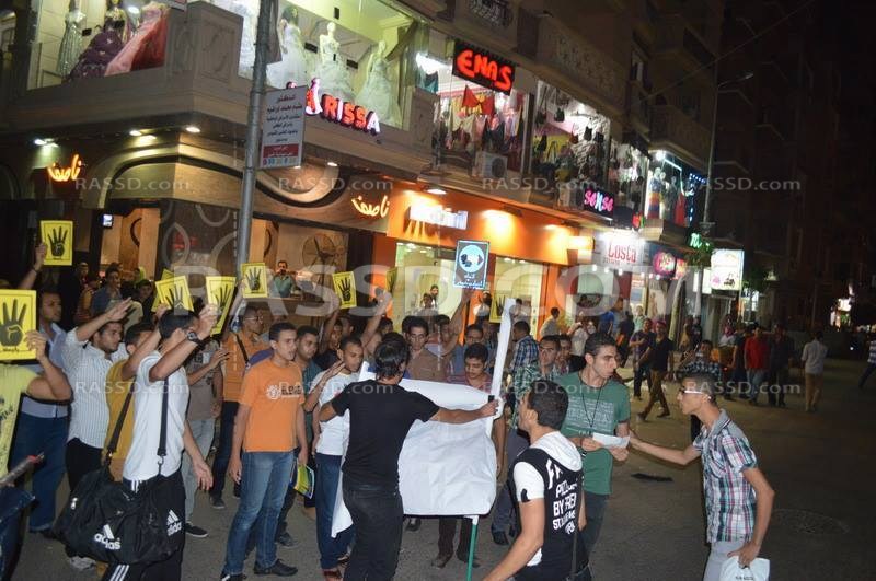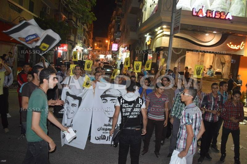 أقام الليلة شباب حركة عفاريت ضد الإنقلاب مظاهرة بمدينة دمنهور حيث هتفوا منددين بحكم العسكر و مذبحة فض رابعة رافعين أعلام لشهداء المذبحة من زملائهم الشباب
