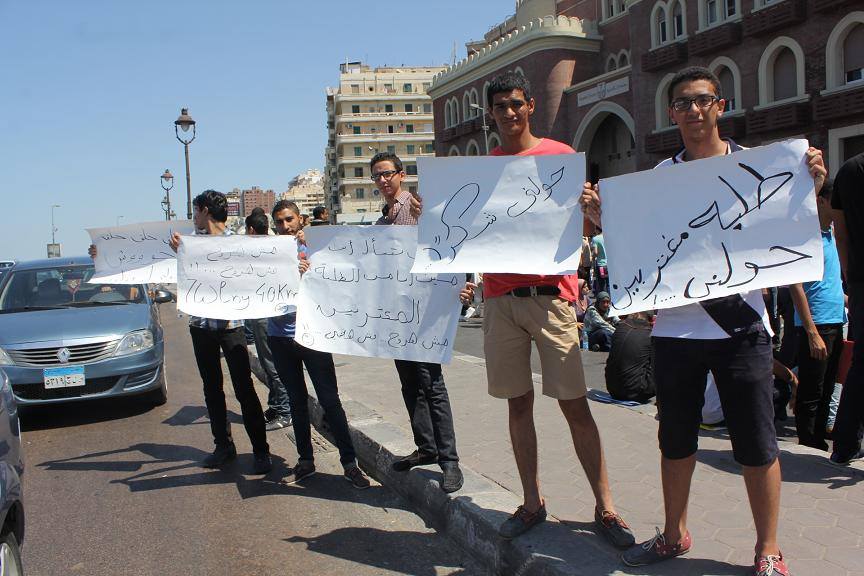تظاهر عدد من الطلاب بالإسكندرية أمام مبني إدارة الجامعة بكورنيش النيل وذلك للمطالبة بالتحويل الورقي للجامعة واحتجاجا علي غلق باب التحويلات .