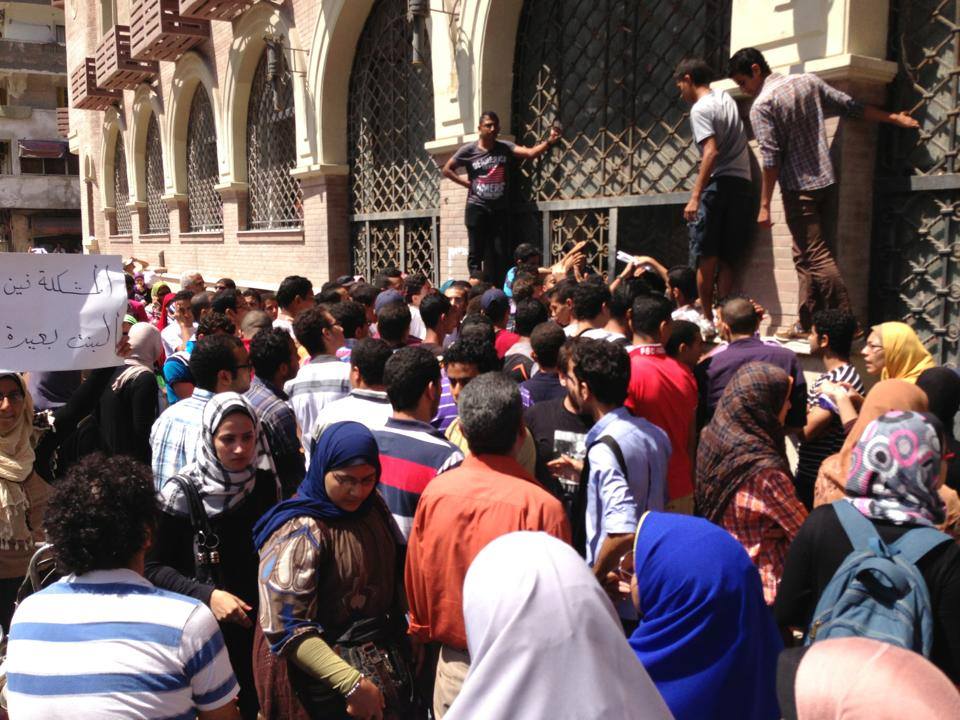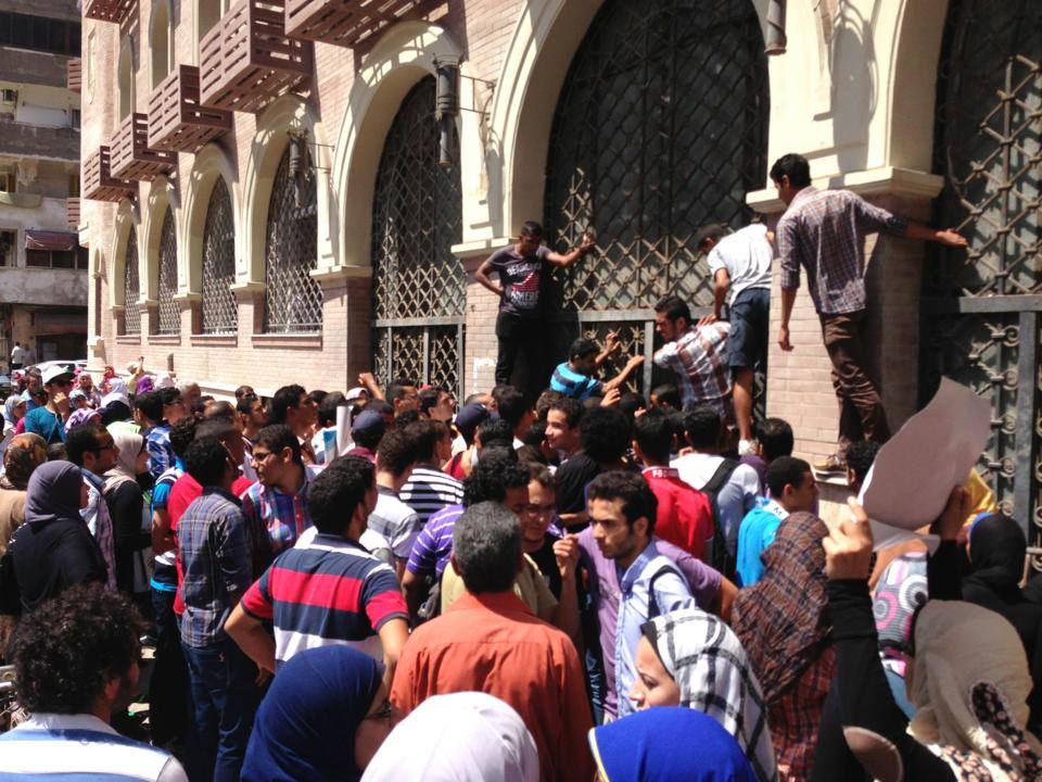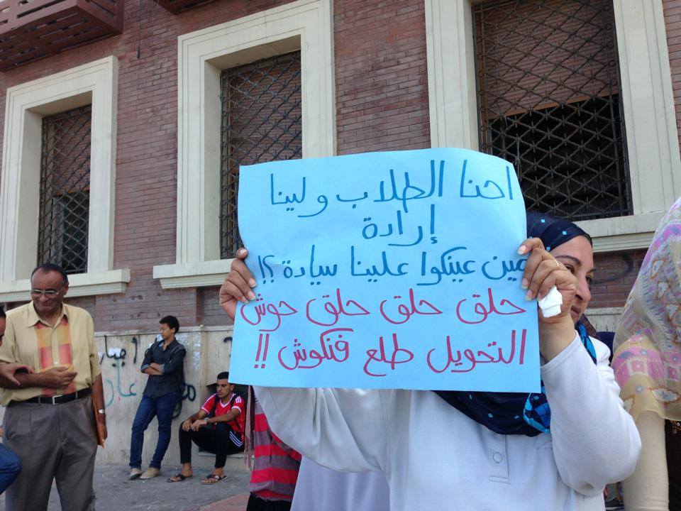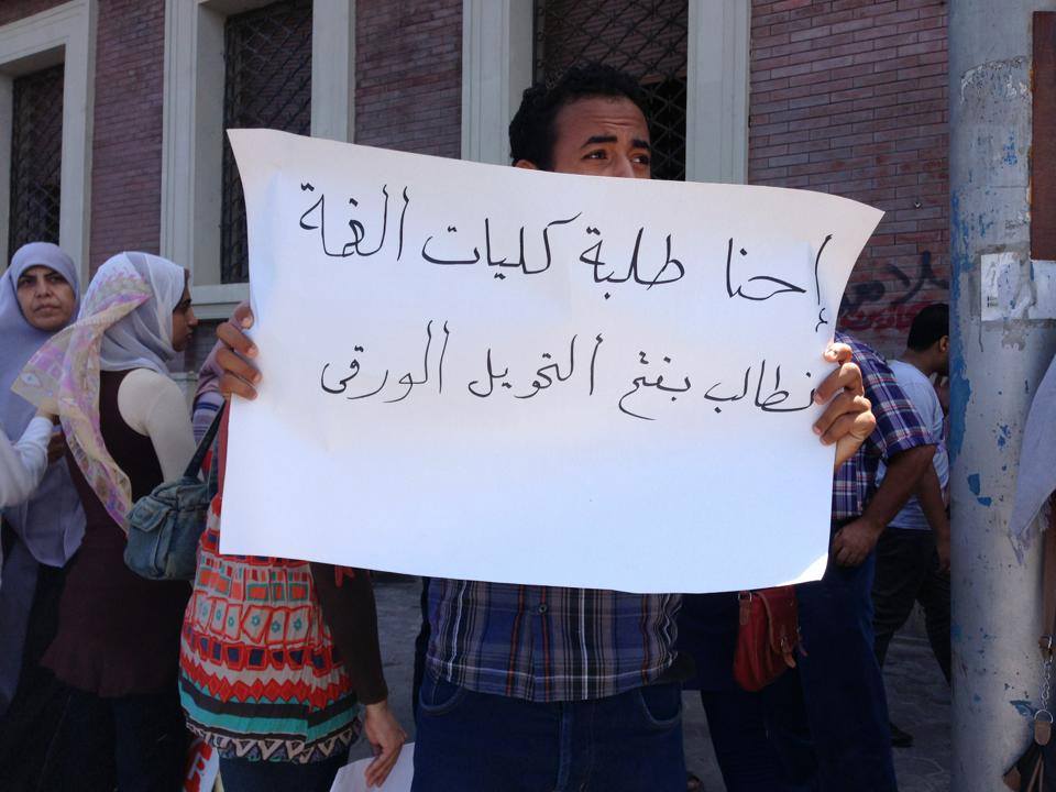 لليوم الثاني علي التوالي تظاهر الطلاب المطالبين بفتح باب التحويل الورقي أمام إدارة جامعة الإسكندرية للمطالبة بفتح باب التحويل الورقي .