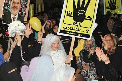 أقام أمس الأربعاء عروسان حفل زفافها بمسجد التوحيد مقر اعتصام القوي الاسلامية و الوطنية ببورسعيد عقب صلاة العشاء و يعلنون رفضهم للانقلاب العسكري الدموي و يرفعون شعارات رابعه.