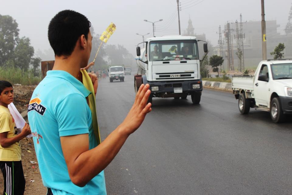 متظاهرون صهرجت يفاجئون المسافرين بسلسلة بشرية في7صباحاًً