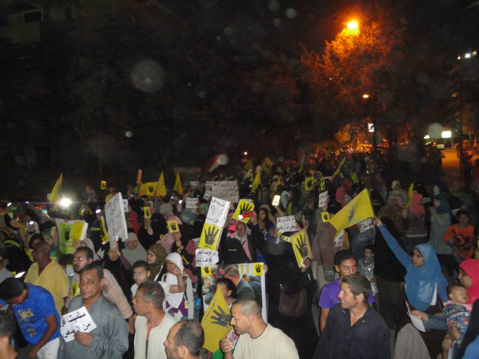 انطلقت مسيرة حاشدة مساءأمس السبت من مسجد التوحيد القريب من شارع الجزائر بحى المعادي رفضا للانقلاب العسكري .