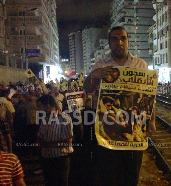 كما انطلقت مسيرة آخرى مساء اليوم من أمام مسجد سيدى بشر متجهة على البحر، لتستقر عند شارع أسكندرية إبراهيم ، رافعين لافتة مدون عليها "يسقط حكم العسكر".