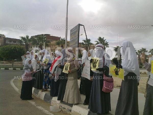 نظمت اليوم السبت مجموعة من السيدات وقفة نسائية أمام النوادي المهنية على البحر بالأسكندرية، ضد الانقلاب.