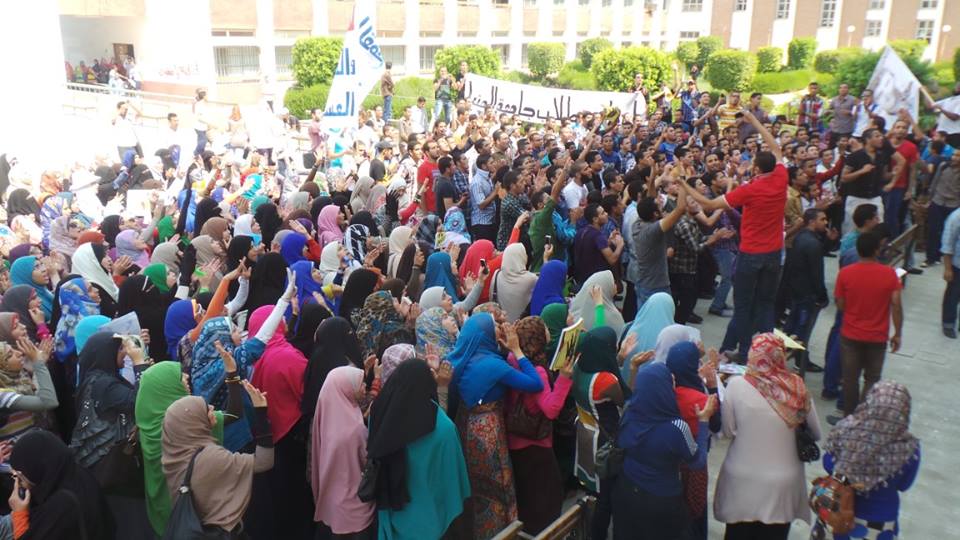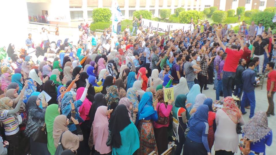 تظاهر عدد كبير من طلاب جامعة المنيا لرفض الانقلاب ورفع الطلاب شارة النصر لرابعة وهتفاوا ضد الانقلاب ومجازره.
