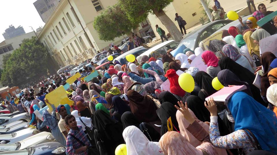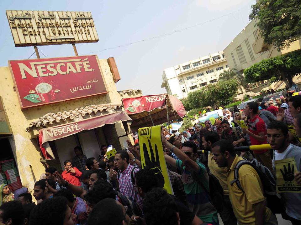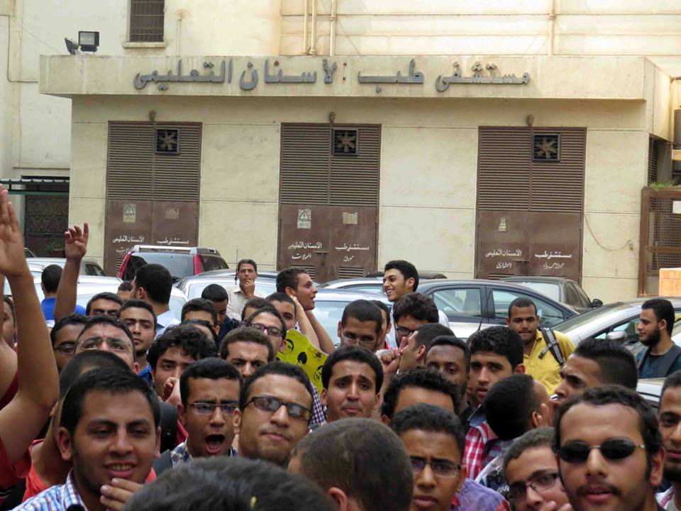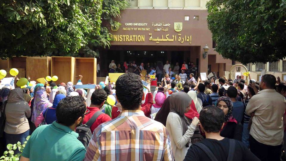 قام عدد كبير من طلاب وطالبات كلية طب القصر العيني وطب اسنان بجامعة القاهرة بمسيرة احتجاجية للتنديد بحكم العسكر .