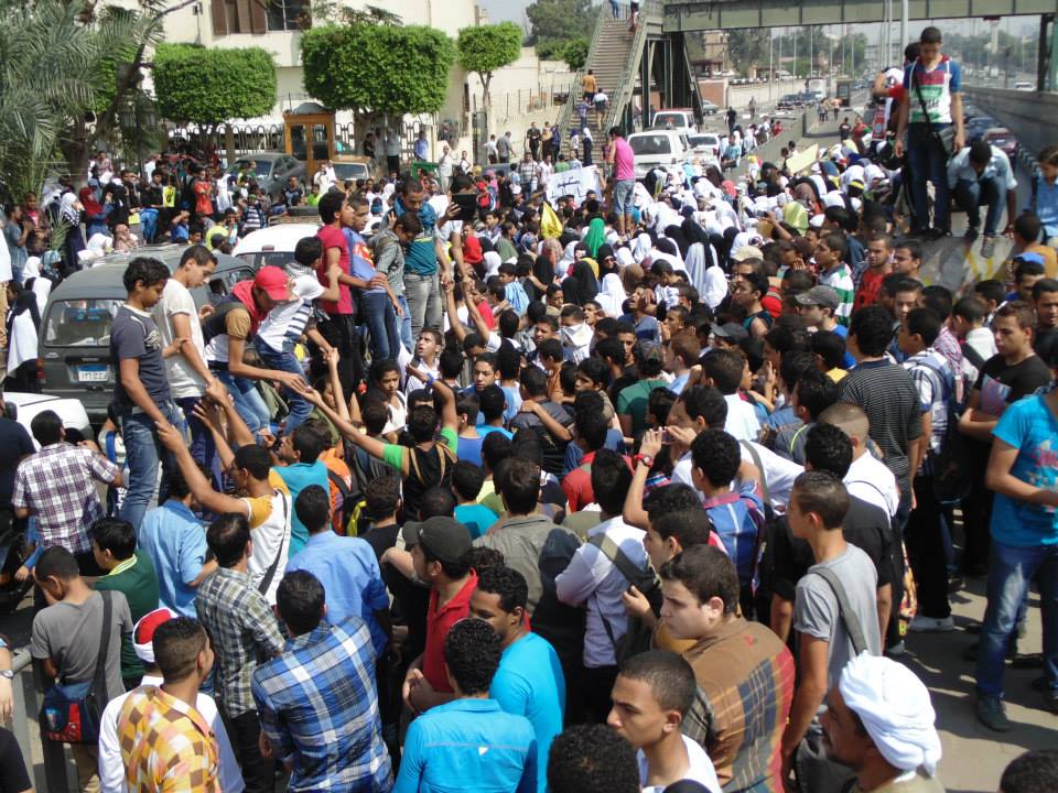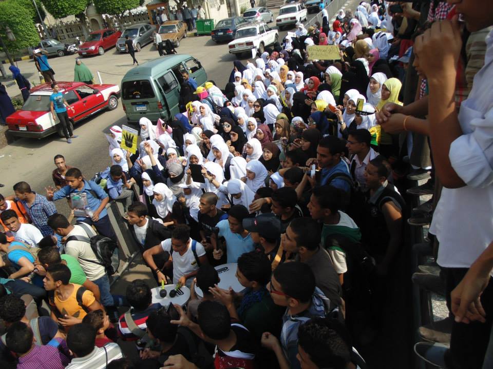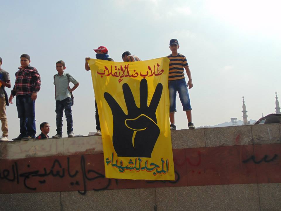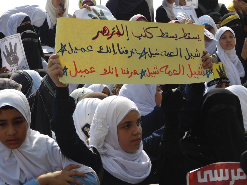 ورفعوا لافتات عليها شعار النصر لرابعة العدوية ولافتات تندد بحكم العسكر موقف الأزهر.