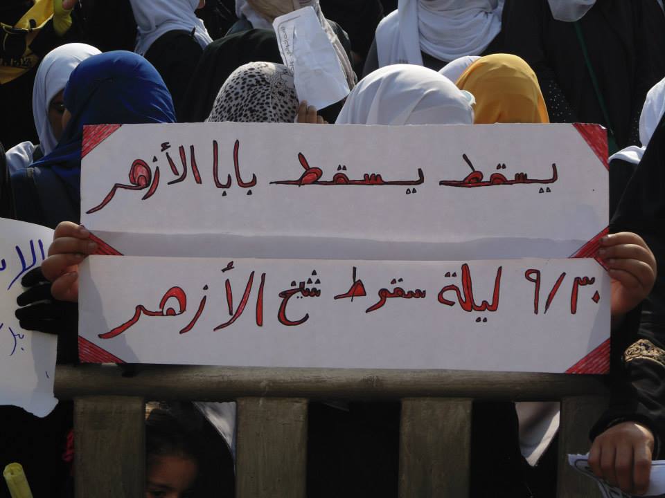 قام طلاب وطالبات الازهر بقفة احتجاجية أمام المشيخة للتنديد بموقف المؤسسة وعلي رأسها شيخ الأزهر الدكتور أحمد الطيب وندد الطلاب ببعض أعضاء لجنة الخمسين .