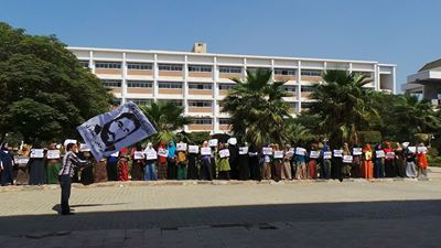 قام طلاب جامعة المنيا بسلسلة بشرية تنديدا بالانقلاب ومطالبة بالافراج عن الطلاب المعتقلين.