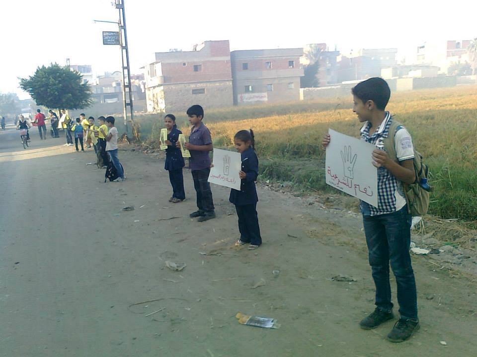 نظم طلاب ضد الانقلاب سلسله بشريه صباح اليوم الثلاثاء 2013-10-1 أمام مدرسة محمد المنسى الاعدادى بكفر الروك _ مركز السنبلاوين _ بمحافظة الدقهلية لرفض الانقلاب الدموي والمطالبة بعودة الشرعية ومحاكمة الانقلابيين. ورفعوا خلال السلسلة لافتات تندد بمجازر حكم العسكر.