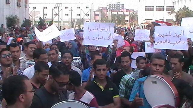 حيث هتف الطلاب طول مالطلبة فى السجون الدراسة مش هتكون , احنا الطلبة ولينا حقوق اسمعونا ياللى فوق ثم انهى الطلاب فاعليتهم بصلاةالغائب على ارواح طلاب مصر الذين استشهدوا فى الاحتجاجات الاخيرة.