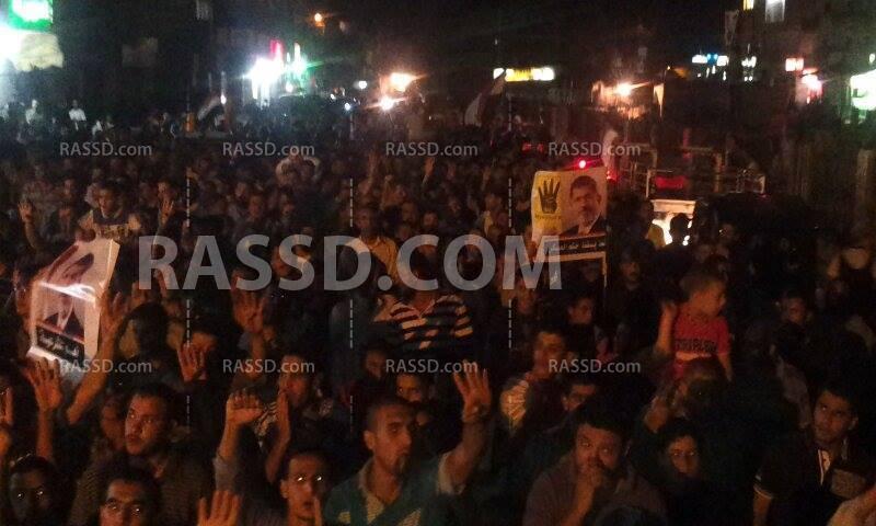 وابتدأت المسيرة من مسجد نور لاسلام واخذت شارع المحطة ومدرسة بديوي وصولًا لكوبري وسط البلد، وسط هتافات مناهضة للانقلاب، والاناشيد الثورية.