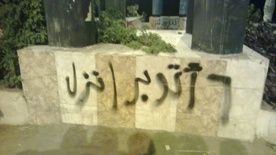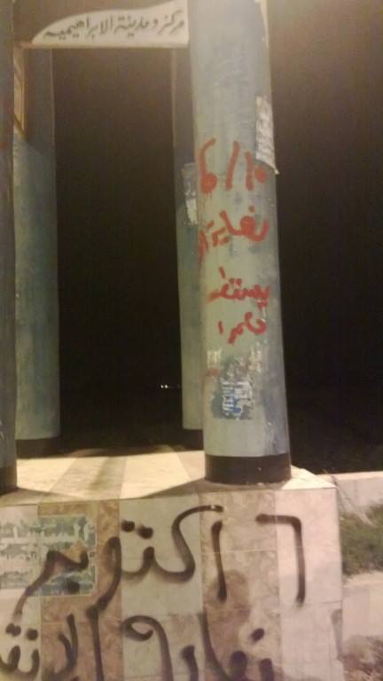 قام بعض أعضاء حركة شباب ضد الانقلاب أمس بكتابة بعض العبارات المناهضة للانقلاب بمدخل مدينة الإبراهيمية بمحافظة الشرقية .