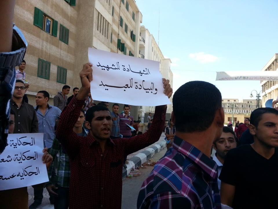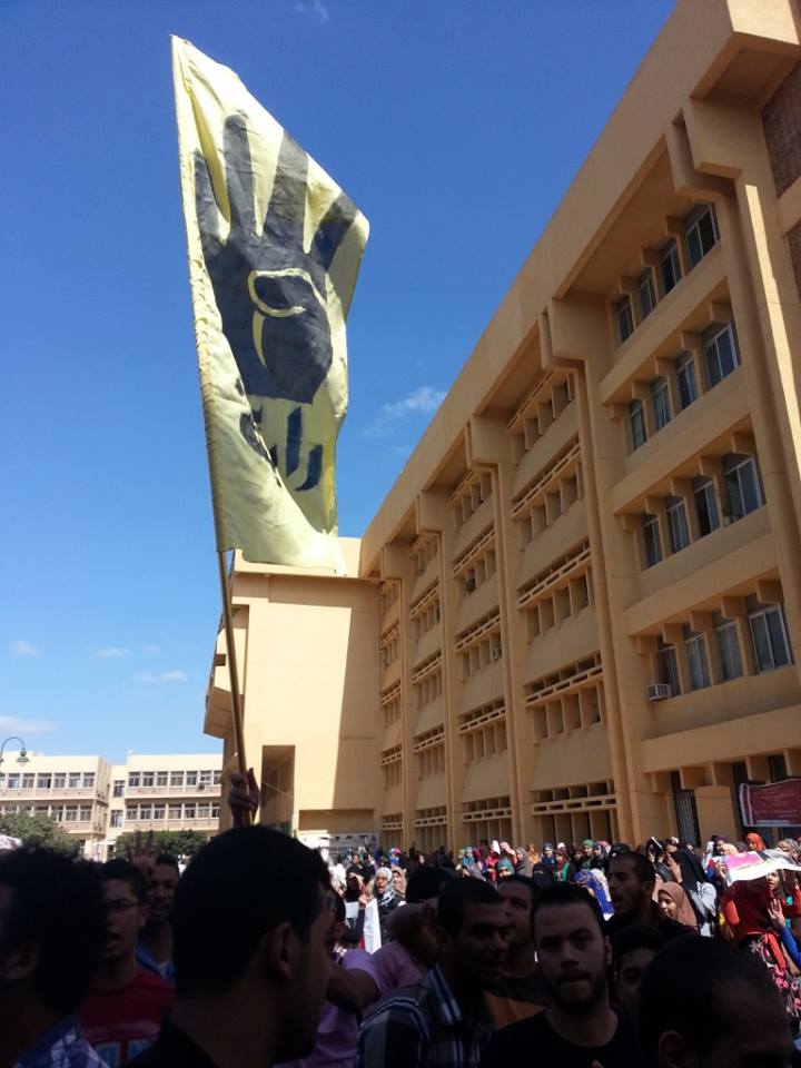 اقامت حركة طلاب ضد الانقلاب مسيرة داخل جامعة كفرالشيخ والذى رفع فيها لافتات رابعة ولافتات منددة بحكم العسكر وايضا هتفوا فيها ضد الانقلاب العسكرى والاعتقال والقتل.