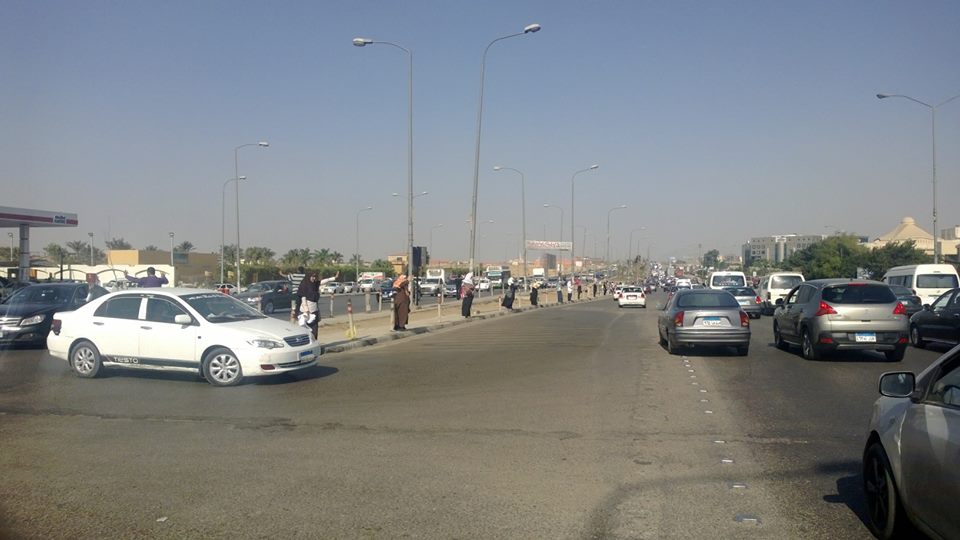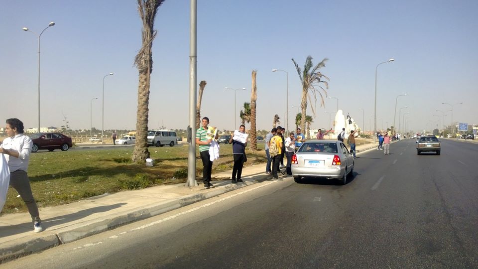 أقام طلاب جامعة مصر للعلوم والتكنولوجيا   السلسلة البشرية الطلابية  التحمت مع سلسلة أخري لطلاب جامعة   السادس من اكتوبر.