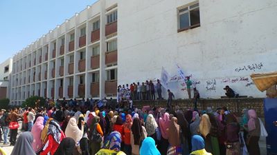و أستنكروا صمت ادارة الكلية عن اعتقال طلابها ورددوا هتافات مثل
