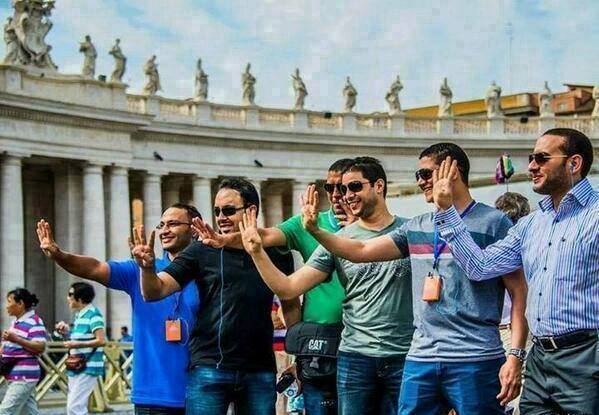 قام بعض الرافضين للانقلاب العسكري برفع شاره رابعه العدويه من الفاتيكان .