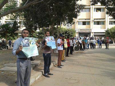 قام طلاب جامعة الأزهر بالزقازيق بسلسلة بشرية رافضة للانقلاب العسكري ومجازره الدموية .