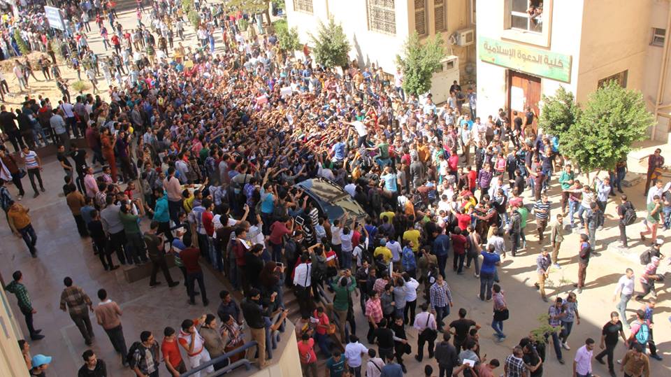 انتفض طلبة وطالبات جامعة الأزهر االيوم ثاني أيام العام الدراسي لإعلان رفضهم للانقلاب الدموي القمع والاعتقال وكذلك موقف مؤسسة الأزهر .