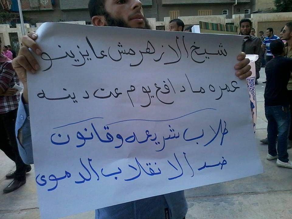وهتف الطلاب مطالبين بسقوط حكم العسكر الذي تسبب في اعتقال زملائهم من طلاب جامعة الأزهر, و منددين بدعم شيخ الأزهر للإنقلاب قائلين " شيخ الأزهر مش عايزينه .. عمره ما دافع يوم عن دينه " .
