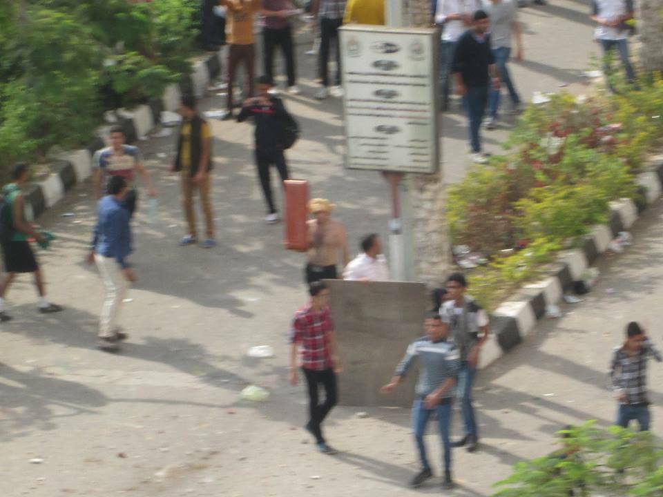 والصورة لطلاب تربية رياضية جامعة المنصورة اثناء اعتداءهم علي كلية الهندسة بالمطاوي والخرطوش و الاخشاب و الحجارة.